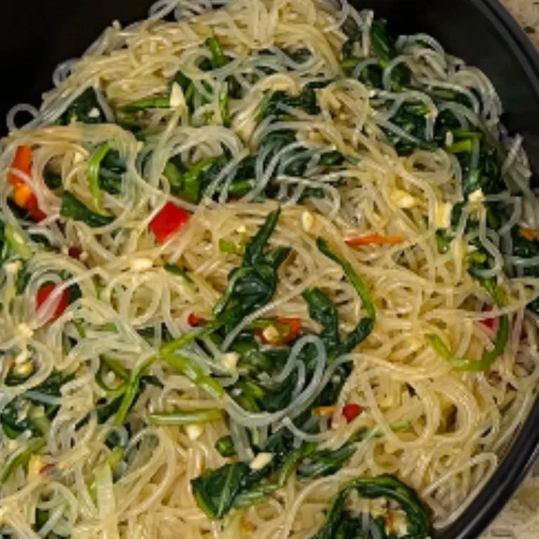 将蒲公英和粉丝倒入拌菜碗中。