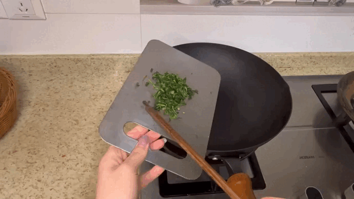 将切好的蒲公英倒入干净的铁锅里小火不断翻炒,直至炒干水分。