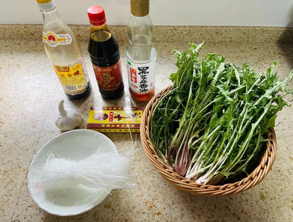 将蒲公英和粉丝控干水分,剪一下备用。