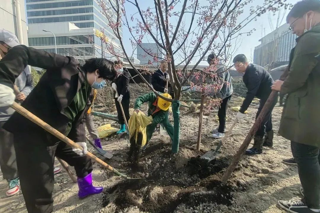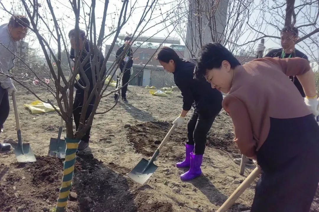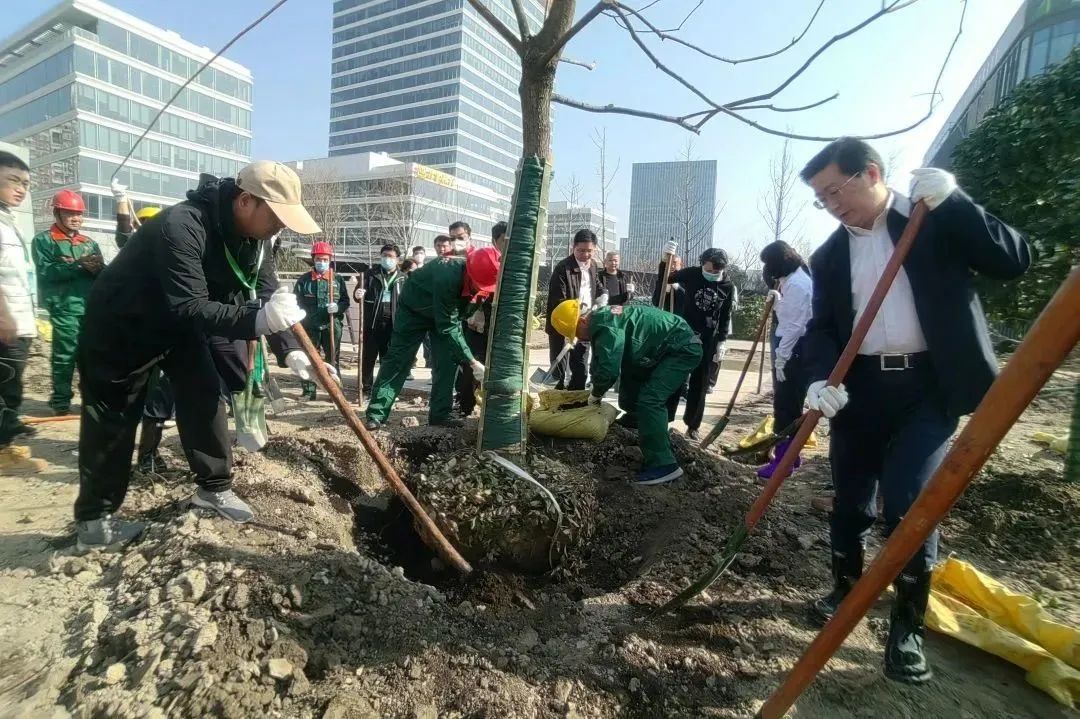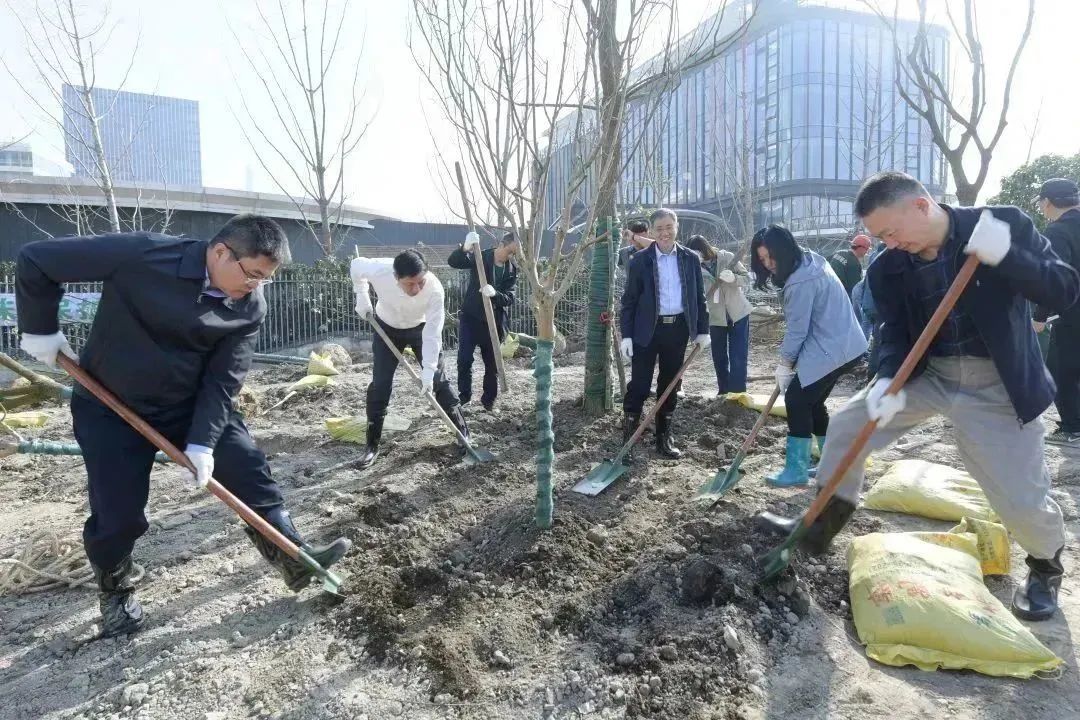 明媚春光中,区领导挥锹铲土、提水浇灌,齐心协力种下一株株栾树。新种下的树苗,迎风挺立,植树现场一片繁忙景象,洋溢着文明新气象。