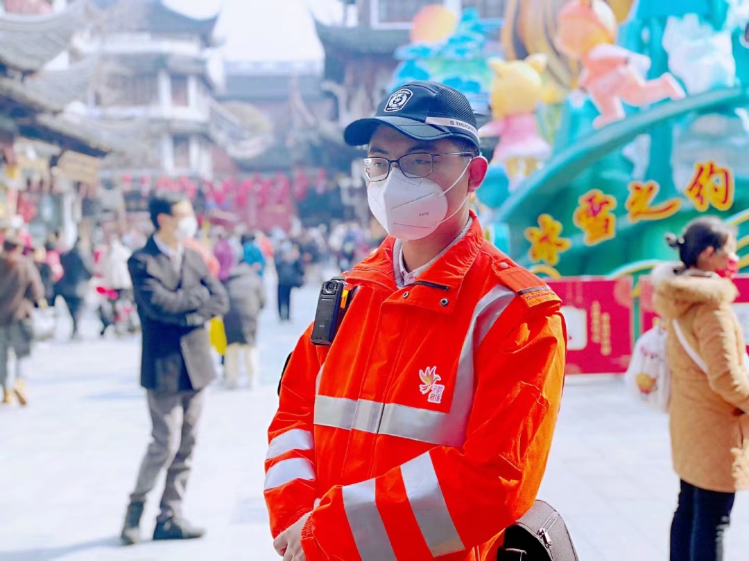 2022年春节,梁钧天放弃了和家人团聚的机会,报名了豫园的应急志愿者,在大家阖家看花灯、逛商场的时候,他作为志愿者默默守护一方平安。