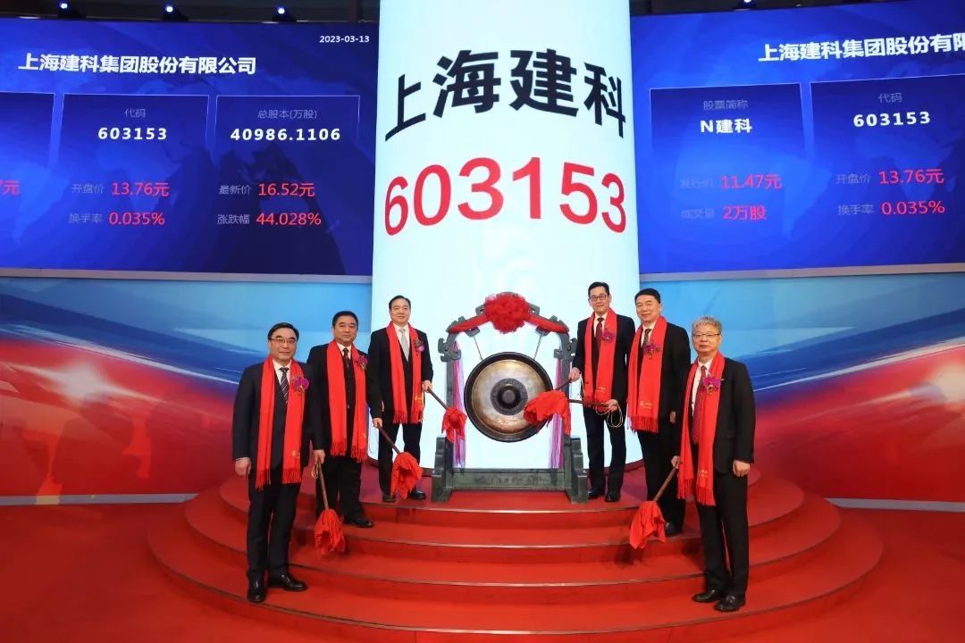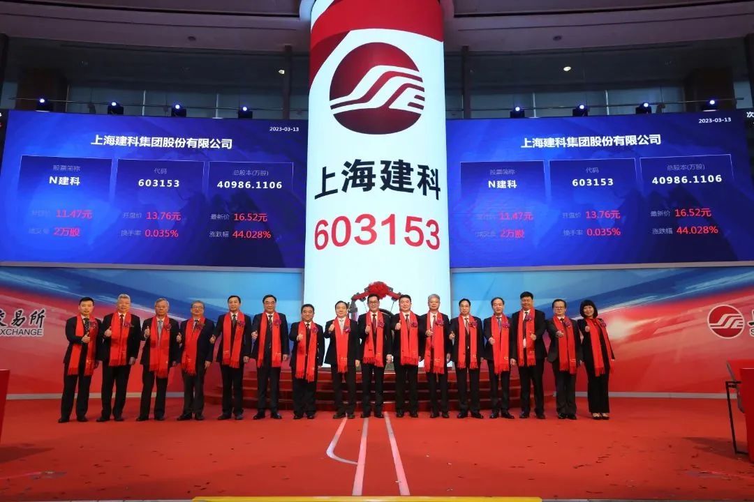 2023年3月13日,徐汇区一家本土成长的企业上海建科集团股份有限公司(简称“上海建科”,证券代码为“603153”)在上海证券交易所主板上市,成为徐汇区又一家主板上市企业,成为2023年徐汇“第一股”。至此,徐汇区境内外上市企业数已达29家,名列全市中心城区前茅。上海市人民政府副秘书长庄木弟,上海市国资委党委书记、主任白廷辉,徐汇区委副书记、区长钟晓咏等出席仪式并敲钟开市。