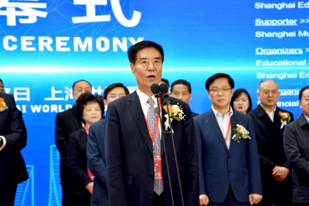 教育部关心下一代工作委员会常务副主任、中国教育装备行业协会专家委员会主任王富宣布博览会开幕