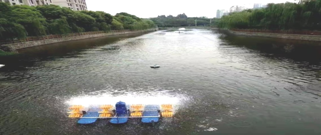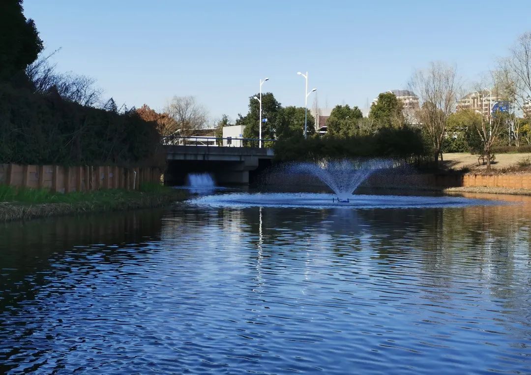 整治后的纬二河,严格管理河道日常养护工作,每天2次对河道进行清捞作业以及河道设施巡查,一旦发现问题养护单位立即到场进行维修养护;同时考虑气候原因,每年入春之后,都会对浮床水生植物及时进行补种;季节交替时,对绿化树木带入河内的自然产物,及时进行清捞作业;对曝氧设备定时保养及检修,确保养护工作一切井然有序。
