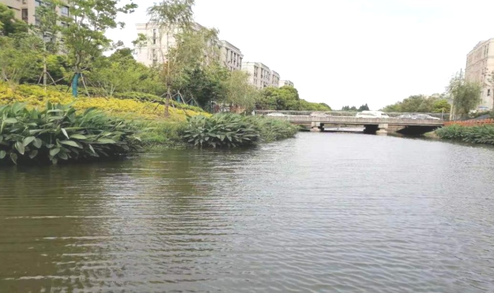 杨浦区水务部门结合新江湾城河道及周边环境的实际情况,积极探索河道治理的新思路和新方案。通过种植水生植物绿化、除藻及增设增氧机等方式,采用食藻虫+沉水植物+生态浮床+水生动物为主体的全生物解决方案,形成完整生物链,水生动植物取代藻类成为水体主导种类,恢复水体自净能力和自身对污染的免疫力,不仅生态而且“负碳”。水草光合作用的同时,还可以增加水体周边环境中氧气和负离子的含量,夏季清凉,冬季温暖,空气中弥漫着淡淡的清香,使人赏心悦目,沁人心脾,形成生态的、健康的生活环境。河道面貌大幅改善,纬二河焕然新生。
