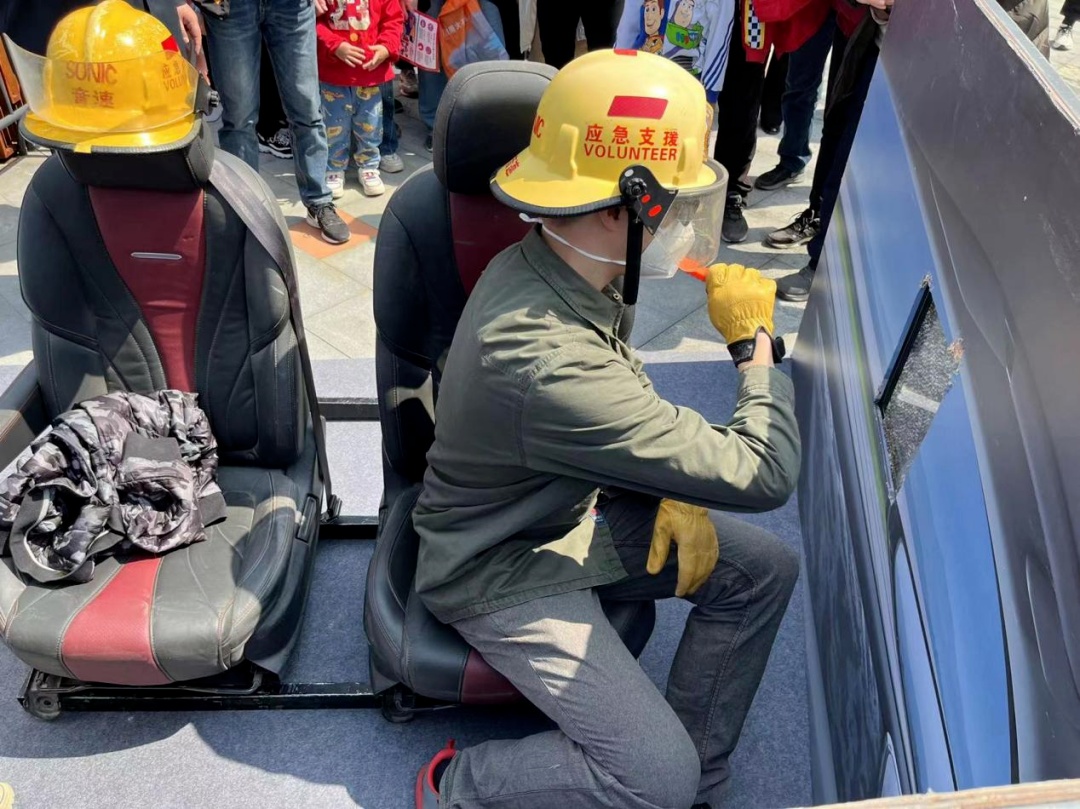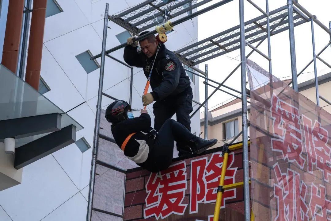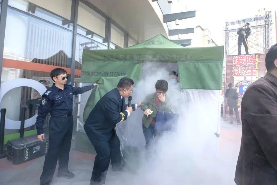 演练结束后,在YOUNG剧场前广场,消防公益市集打卡活动正式拉开序幕。活动分别设置了缓降逃生、消防救援装备参观、浓烟障碍逃生体验、坐姿站姿破障逃生体验、厨房火灾体验、电动自行车火灾原理学习、趣味消防问答等多个主题小活动,内容丰富,形式多样。