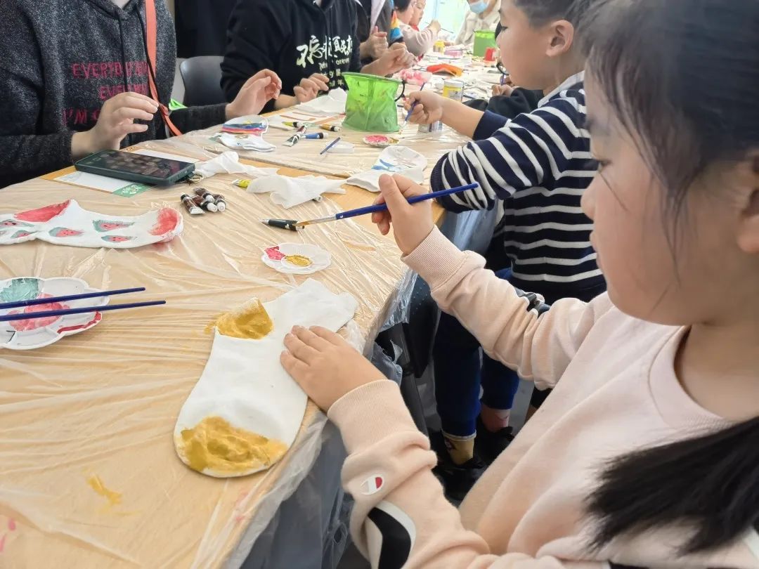 在画袜子环节,孩子们泼墨挥毫,充分发挥想象,用一抹抹缤纷色彩,表达了自己对“美”的不同理解。