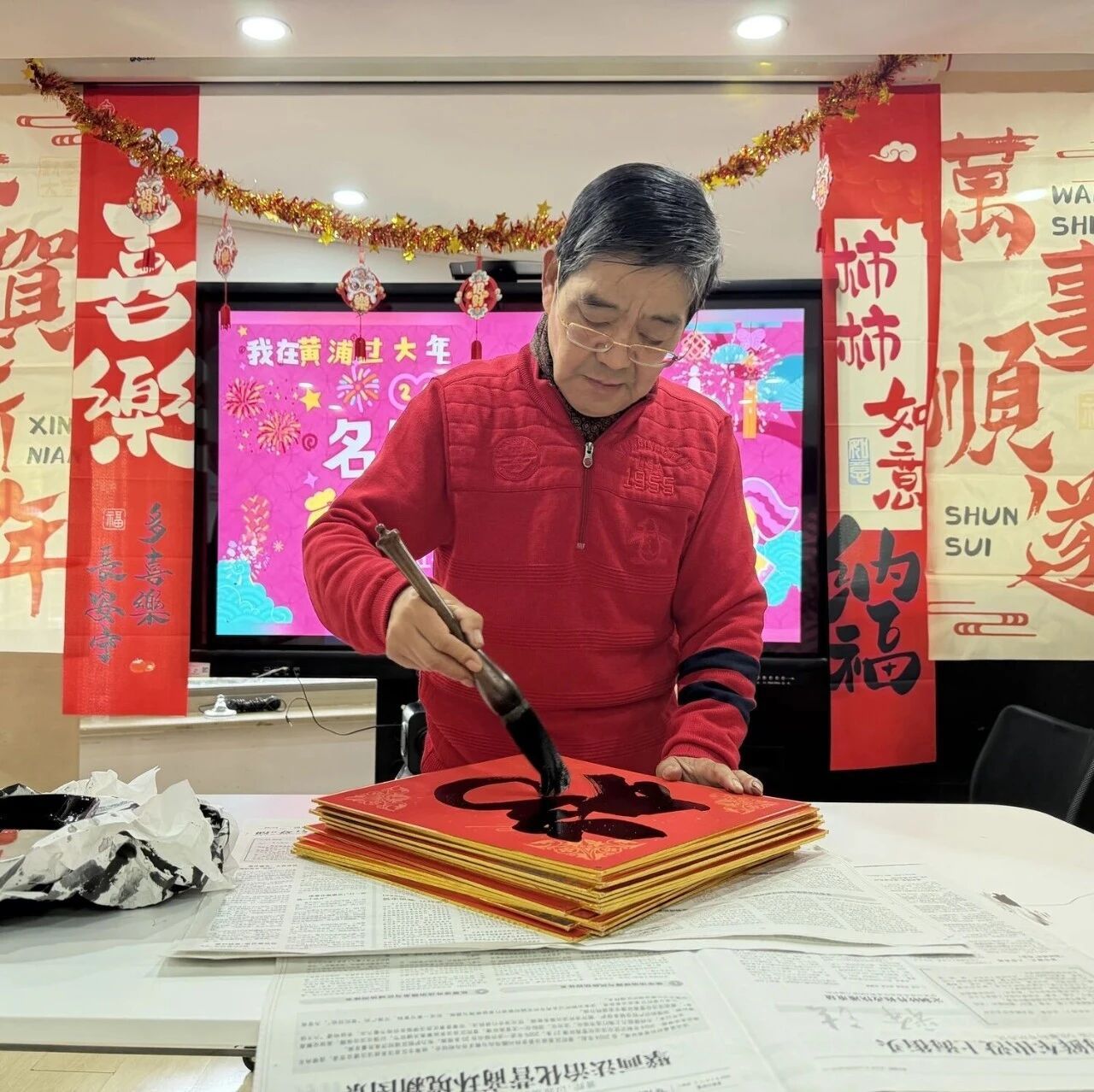 书法家携马年福字,赴一场邻里新春之约