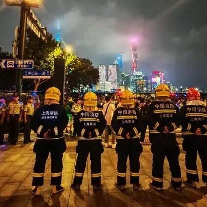 外滩人潮映华灯,“火焰蓝”守护不夜城!