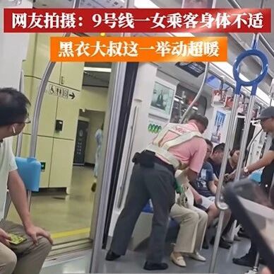 9号线一女乘客身体不适,黑衣大叔这一举动超暖!