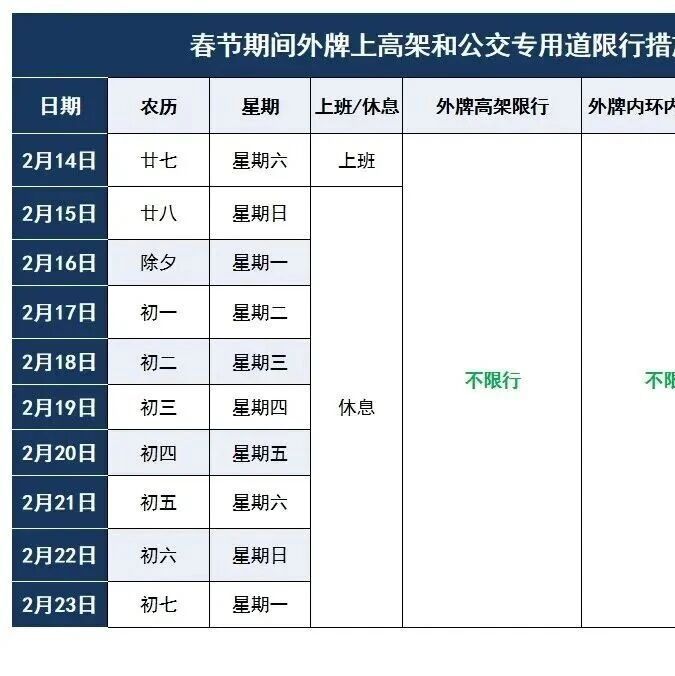 春节期间本市高架和公交专用道通行提示!