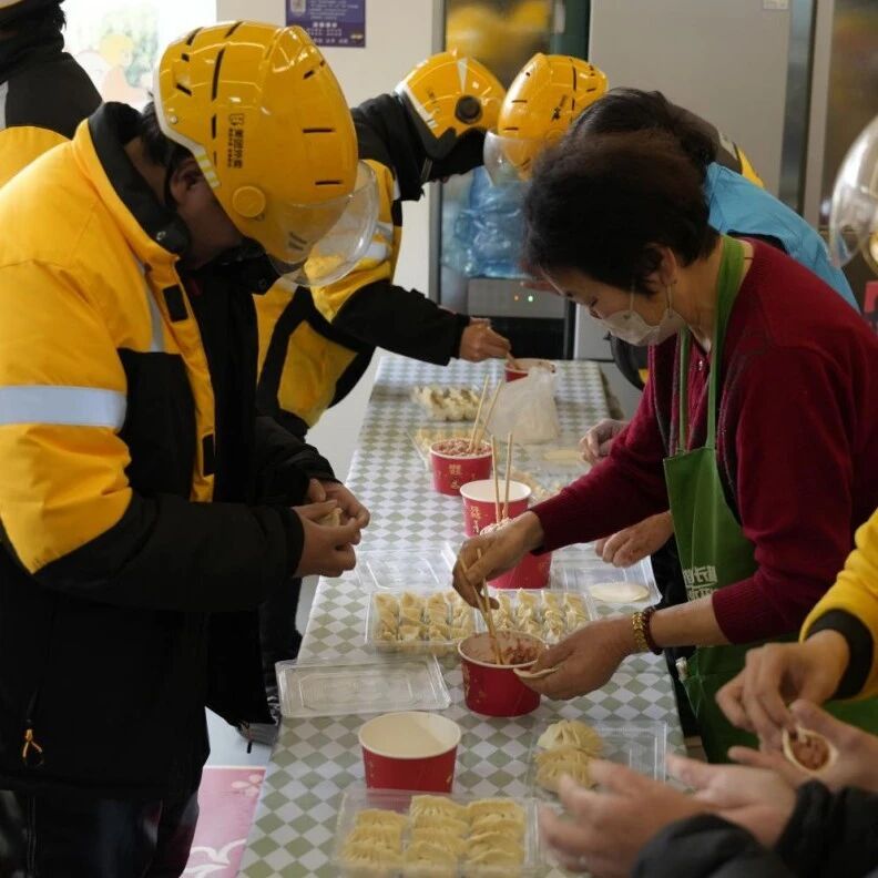 在嘉过大年丨留沪“骑手”大展身手,这顿饺子宴吃得比赶单还“燃”