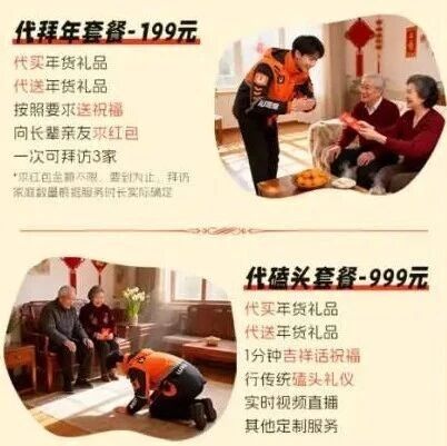 找人帮忙“拜年尽孝”?代磕头服务售价999元!网友热议↗