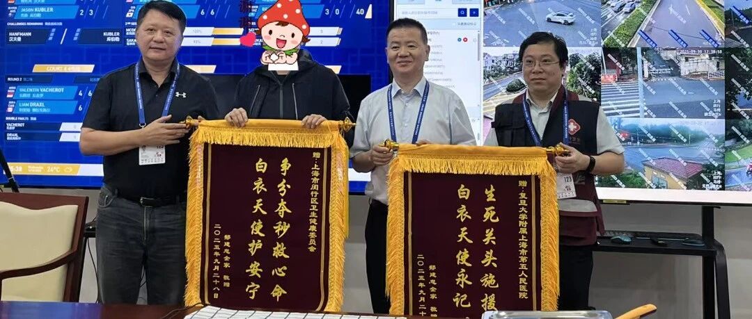 大师赛刚开始,有人赶到场馆送了两面锦旗……