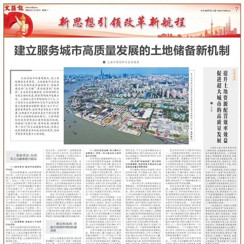 【智库声音】文汇报 | 万勇:提升土地资源配置效率效益 促进超大城市的高质量发展