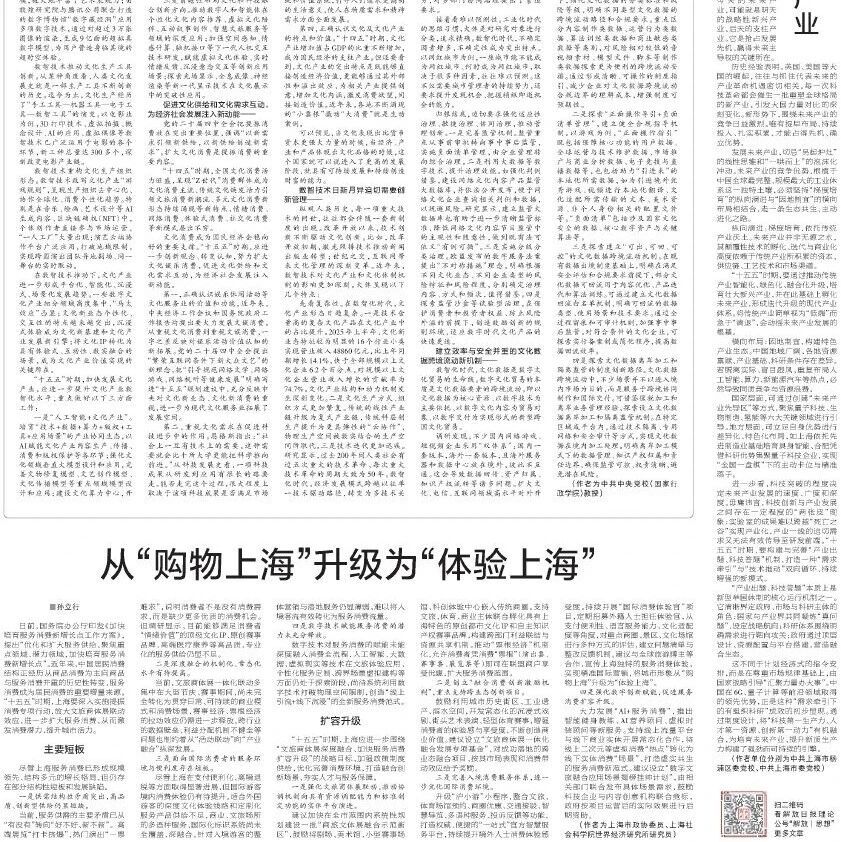 【智库声音】解放日报 | 孙立行:从“购物上海”升级为“体验上海”
