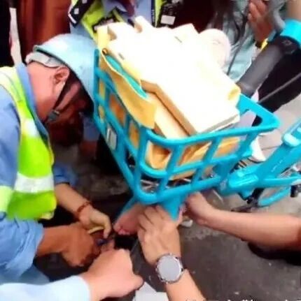 私装“载娃神器”要不得!10岁女孩脚卡共享单车……
