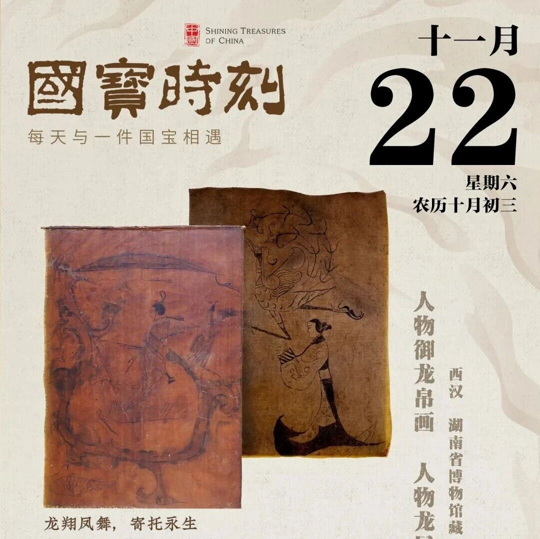 每天与一件国宝相遇!《国宝时刻·人物御龙帛画人物龙凤帛画》解码先秦绘画双璧的笔墨玄机