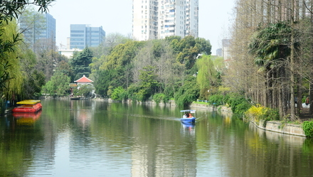 220亩的银锄湖,占公园四成面积,拥有如此广阔湖面的公园,至今在上海全市也并不多。湖中可容上百只小船同时鼓桨,至今每年端午前夕,普陀区还会在此举办机关城市龙舟赛。