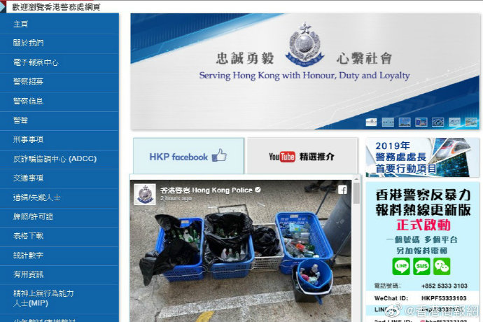 据《香港商报》消息,19日,沿用了二十年的警队口号“服务为本 精益求精”改为“忠诚勇毅 心系社会”。香港警务处网站、警总记者室等已换上新口号。