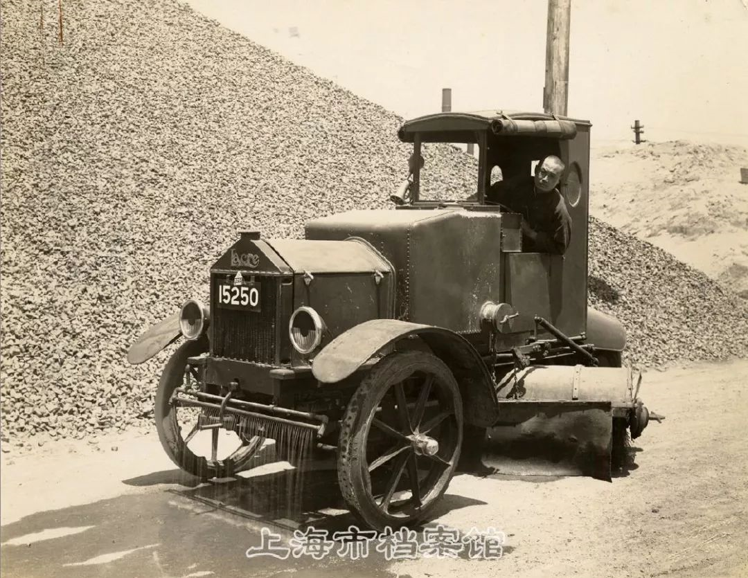 ▲ 近代上海引入了机械化筑路设备。图为筑路车(上海市档案馆藏)