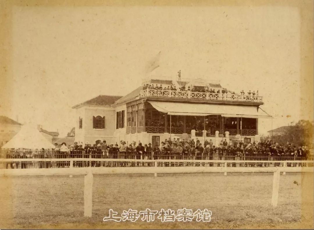 ▲ 跑马场后来曾两次搬迁,最终迁至现在的人民公园。图为观众在跑马场观看赛马。(上海市档案馆藏)