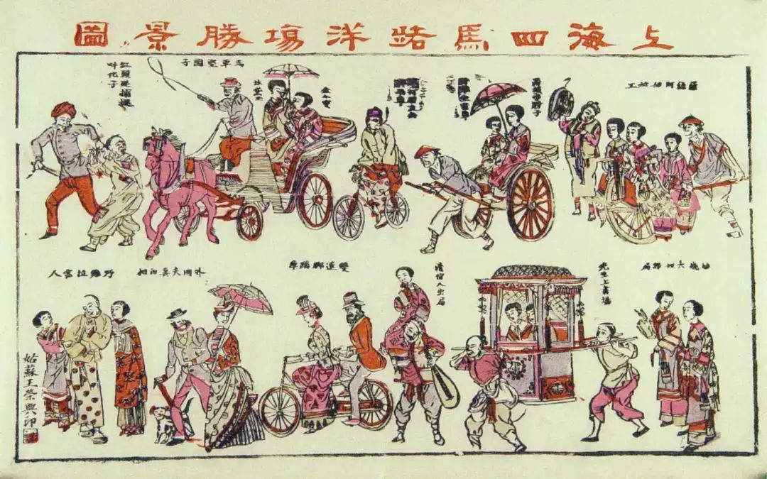 ▲ 桃花坞年画《上海四马路洋场胜景图》。四马路(福州路)曾经是上海十里洋场精华所在地。