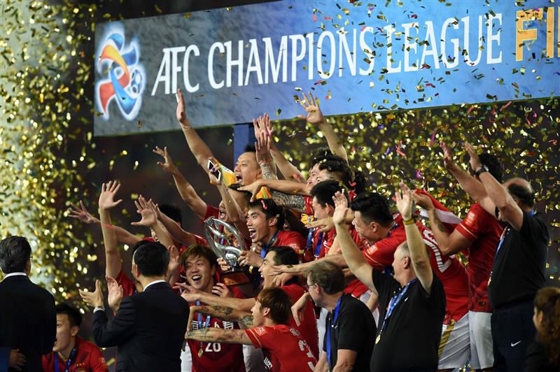 为2015年11月21日,广州恒大队第二次夺得亚冠联赛冠军。 新华社记者郭勇摄