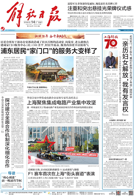 ▌今日《解放日报》1版报道,备受瞩目的世界一级方程式锦标赛(F1)第1000站大奖赛在上汽国际赛车场轰鸣启动。昨天中午,F1赛车亮相上海市中心,在新天地太平湖公园上演赛车街道表演。上海市市长应勇为纪念赛车上的上海城市推广标志“上海印章”揭幕,并与F1世界锦标赛集团执行总裁切斯·凯里一起为赛车加油。