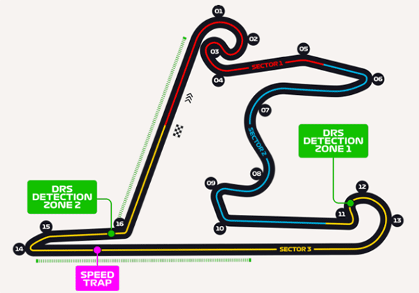 上赛道 设计灵感来自中文“上”字,共有16个弯道。单圈长度:5.451公里,比赛方向:顺时针,比赛圈数:56,比赛距离:305.066公里。目前,最快圈速由塞巴斯蒂安·维特尔在2018年创造,为1分31秒095。