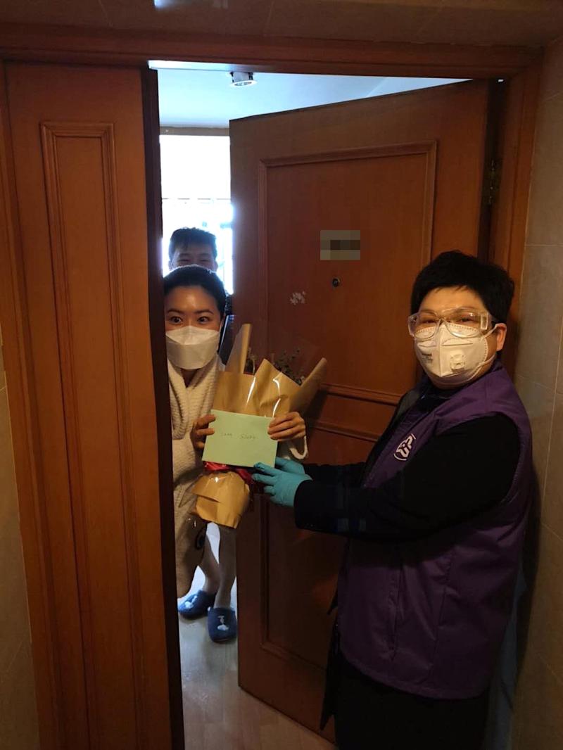 “三八妇女节”,居委会为居家隔离家庭的女主人送上鲜花