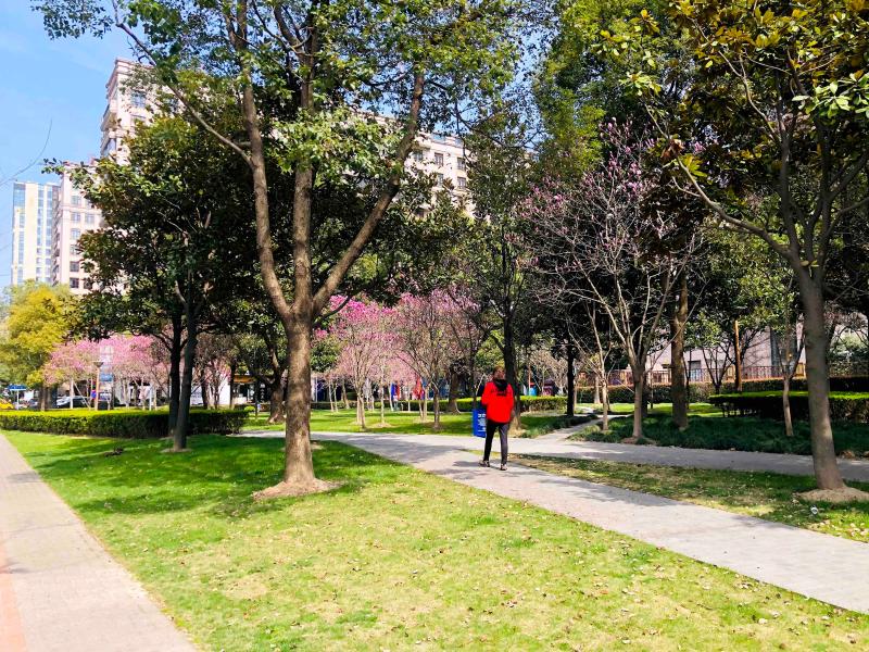 阳春三月,古北国际社区一派春意盎然,有居民忍不住戴着口罩下楼拍摄盛开的广玉兰。