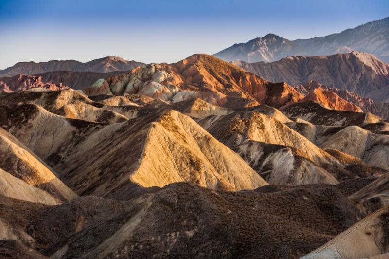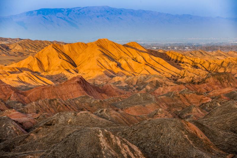 经过了紧张的拍摄后,团员们在鸣沙山景区参加了骑骆驼、滑沙、沙地摩托等活动,当天下午去了莫高窟。而第二天,等待他们的又是600公里折返张掖的旅程,和落日前张掖丹霞地貌的拍摄。对这类摄影爱好者的团,旅游界有个专门的称呼:日出日落团。看看团友们拍摄的金色阳光下张掖丹霞地貌的照片,金光闪耀又雄浑壮阔,似乎并不逊色于美国科罗拉多大峡谷?