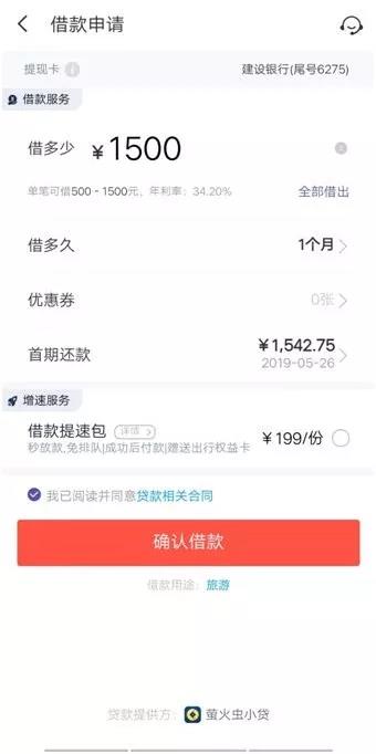 杨女士:“就下载了app,输入了这些资料,第一次借款的额度是1000,在贷款前需要购买一个出行的什么卡,叫什么我都忘了,那个卡是199元,买了那个卡才可以下款。”