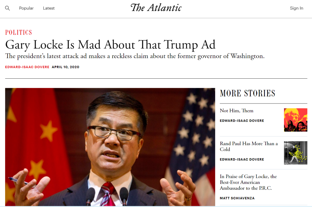《大西洋月刊》还在这篇文章中报道了骆家辉本人在得知他被特朗普的竞选团队暗示为是中国官员后的反应:愤怒。