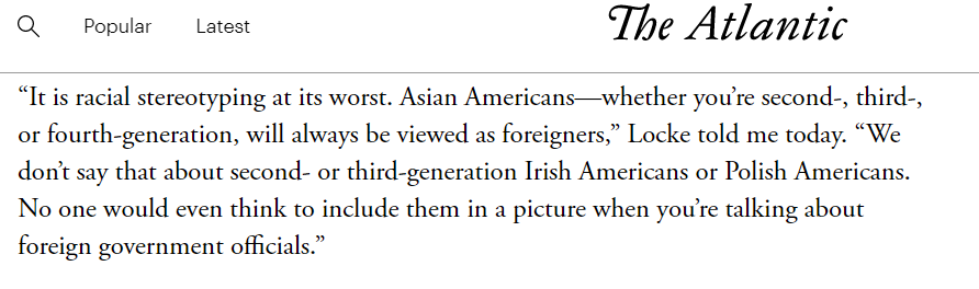 从报道来看,他的愤怒在于:仿佛亚裔美国人,不论他们是第二代、第三代还是第四代,都仍然会被特朗普所代表的这种种族主义的刻板偏见给视作“外国人”,然而爱尔兰裔或波兰裔的美国人却不会面临这种情况,不会被人暗示为“外国政府官员”。